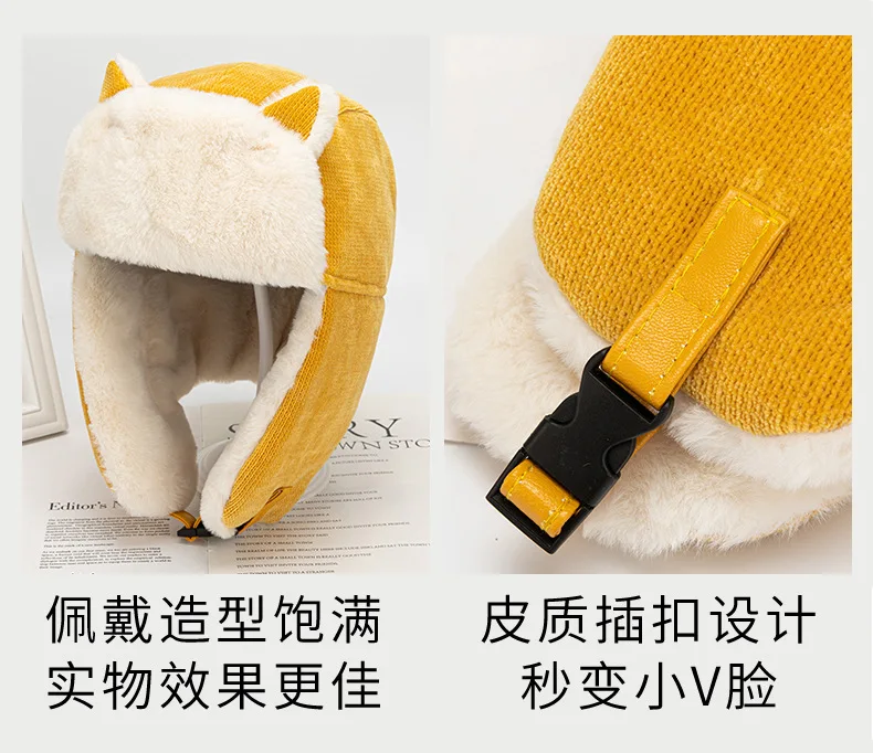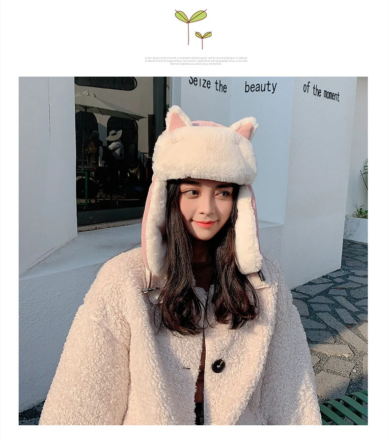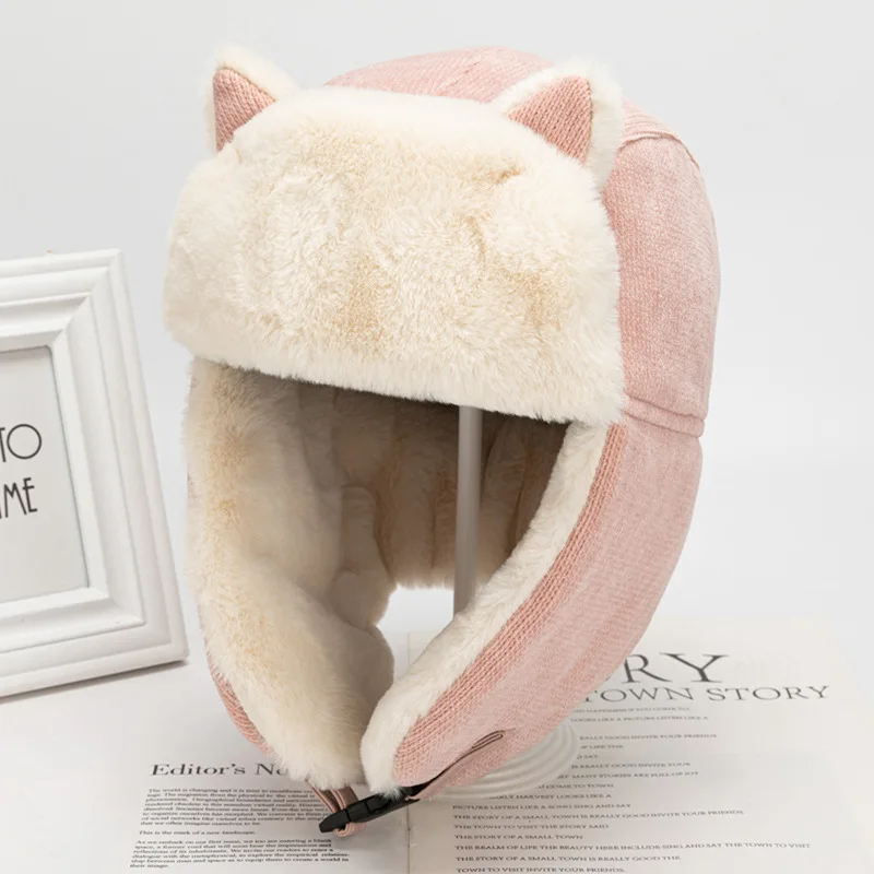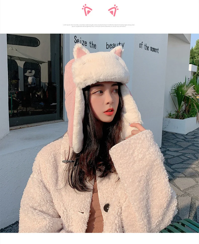 Specifications: Thick, warm cat ears bomber hat made from soft imitation rabbit hair material. Perfect for staying warm outdoors in the winter.